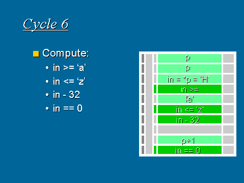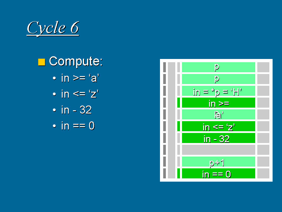 Legend: Dark green: newly computed this cycle Light green: computed in some earlier cycle, still valid Red: active control block 15